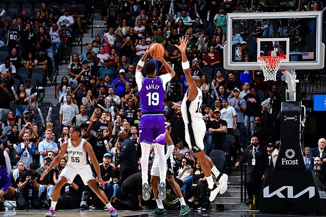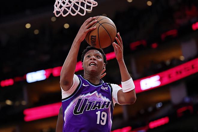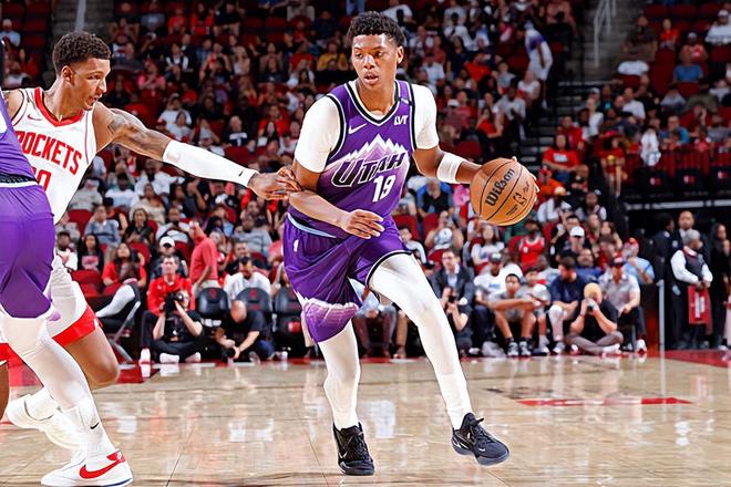本場(chǎng)比賽中,雖然爵士輸?shù)袅吮荣悾乔蜿?duì)的先發(fā)側(cè)翼新秀艾斯-貝利(Ace Bailey)也是延續(xù)了自己在前一場(chǎng)對(duì)陣休斯頓火箭季前賽中的出色狀態(tài)。貝利全場(chǎng)出場(chǎng)38分46秒,投籃13中8,三分線外5中2,罰球2中2,得到了20分7籃板1助攻2搶斷的數(shù)據(jù),還有2次失誤和4次犯規(guī),正負(fù)值為-9。貝利在進(jìn)攻端又一次將自己的全面性發(fā)揮了出來(lái),他也是通過(guò)各種方式拿下了大量的分?jǐn)?shù),他有著相當(dāng)不錯(cuò)的籃下得分能力,他也具備不俗的外線投射能力,他看起來(lái)是一名得分能力非常優(yōu)秀的球員。不僅如此,他在防守端的表現(xiàn)同樣是值得肯定的,他也是能夠利用自己在身體天賦和運(yùn)動(dòng)能力方面的優(yōu)勢(shì)在防守端給對(duì)手制造不小的麻煩的。貝利雖然是一名新秀,但是他在場(chǎng)上顯得自信心十足,他的個(gè)人能力和成熟度都是要超出大家預(yù)期的。
